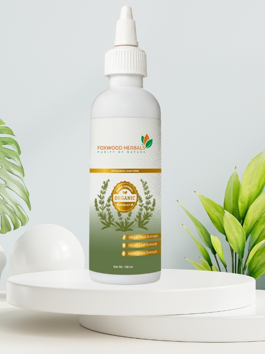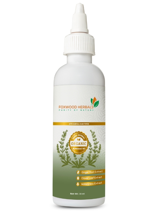 Foxwood Herbals Anti-Hairfall Toner is a natural scalp revitalizer enriched with Ginger Root, Clover Leaf, and Watercress Extracts. This powerful herbal blend strengthens roots, reduces hair fall, and promotes healthy hair growth, leaving your hair stronger, shinier, and full of life.