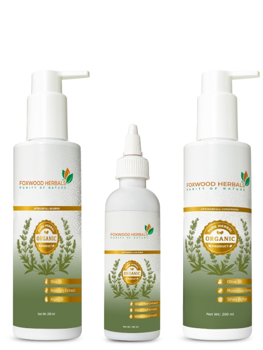 Foxwood Herbals Anti-Hairfall Shampoo, Conditioner, and Toner are a 3-in-1 herbal solution designed to reduce hair fall, strengthen roots, and boost hair growth. Enriched with Olive Oil, Rosemary Extract, Argan Oil, Watercress Extract, and Shea Butter, this sulfate- and paraben-free formula cleanses, nourishes, and fortifies your hair, making it stronger, thicker, and healthier. Ideal for all hair types and daily use.